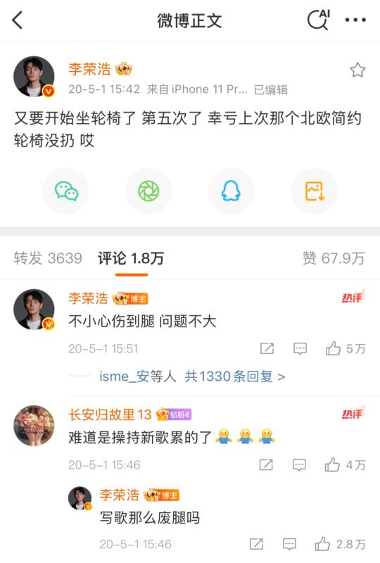 💙【2020.5.1】轮椅体验卡·第五次续费🥲哥依旧用幽默化解了自己的伤痛,休养的日子成了音乐创作道路上暂时的休止符,想必这段时光也会成为特别的沉淀。