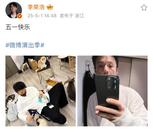 💙【2025.5.1】这个五一假期要去见哥的,来评论区举手🙋假期还在江浙沪奔波的李荣浩辛苦啦,镁光灯照不到的角落里投喂猫猫狗狗,依然保持着对生活最本真的热爱~