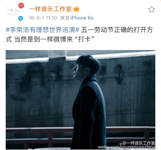 💙【2016.5.1】「有理想」世界巡回演唱会进行中。李荣浩用音乐诠释着理想的模样,那些在耳机里循环过无数次的歌,化作舞台上闪耀的瞬间和具像的声浪。