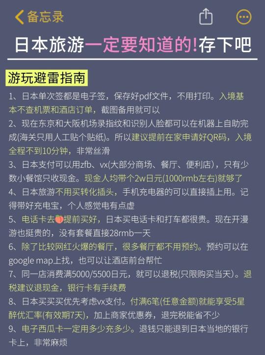 2️⃣日本支付可以用zfb、vx(大部分商场、餐厅、便利店),只有少数小餐馆只收现金。现金人均带个2w日元(1000rmb左右)就够了