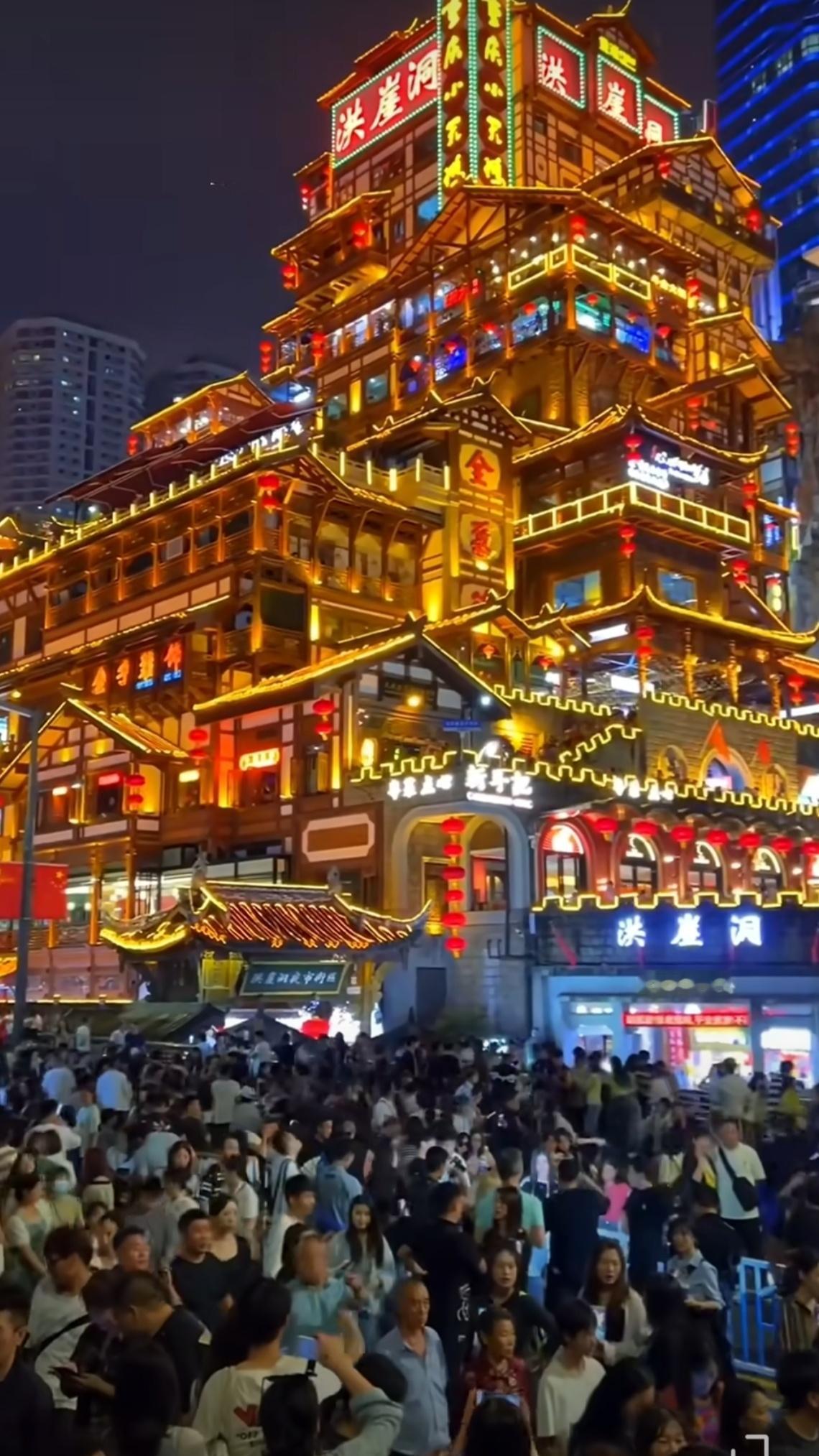 重庆洪崖洞有多挤每到节假日,洪崖洞都是人山人海,太吓人了[跪了][跪了][跪了]