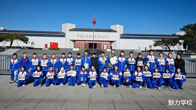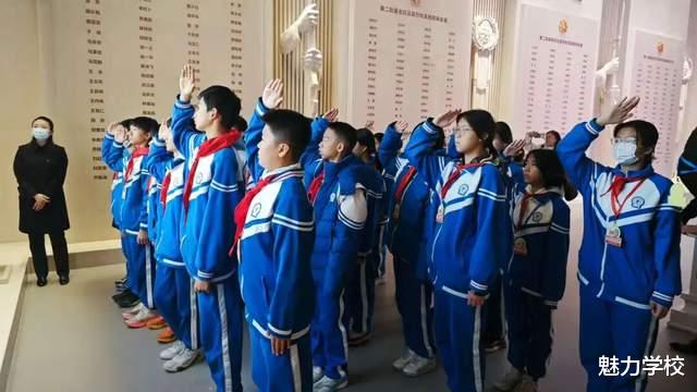 "我宣誓:我是中国少年先锋队队员。我热爱中国共产党,热爱祖国,热爱人民,好好学习,好好锻炼,准备着:为共产主义事业贡献力量!......" 馆前广场上,同学们身着整齐校服,高举右拳,誓言铿锵有力,响彻云霄。稚嫩的脸庞上写满坚毅,清澈的眼眸中闪烁着对先烈的敬仰与对祖国的赤诚。