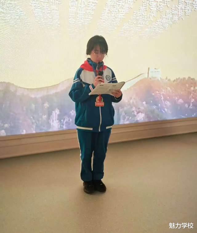 三位同学携手主持,带领现场师生重温那段山河泣血的抗战岁月。他们深情讲述卢沟桥畔中国人民抗日战争纪念馆的由来,从斑驳城墙上的弹痕到馆内珍贵的历史文物,每一处细节都承载着民族的伤痛与不屈。他们回望七七事变的烽火硝烟,铭记3500万同胞伤亡的血泪与6000亿美元损失的重创,缅怀杨靖宇吞棉充饥的坚毅、张自忠以身殉国的忠烈,更以深情笔触阐释抗战精神穿越岁月、历久弥新的时代内涵。