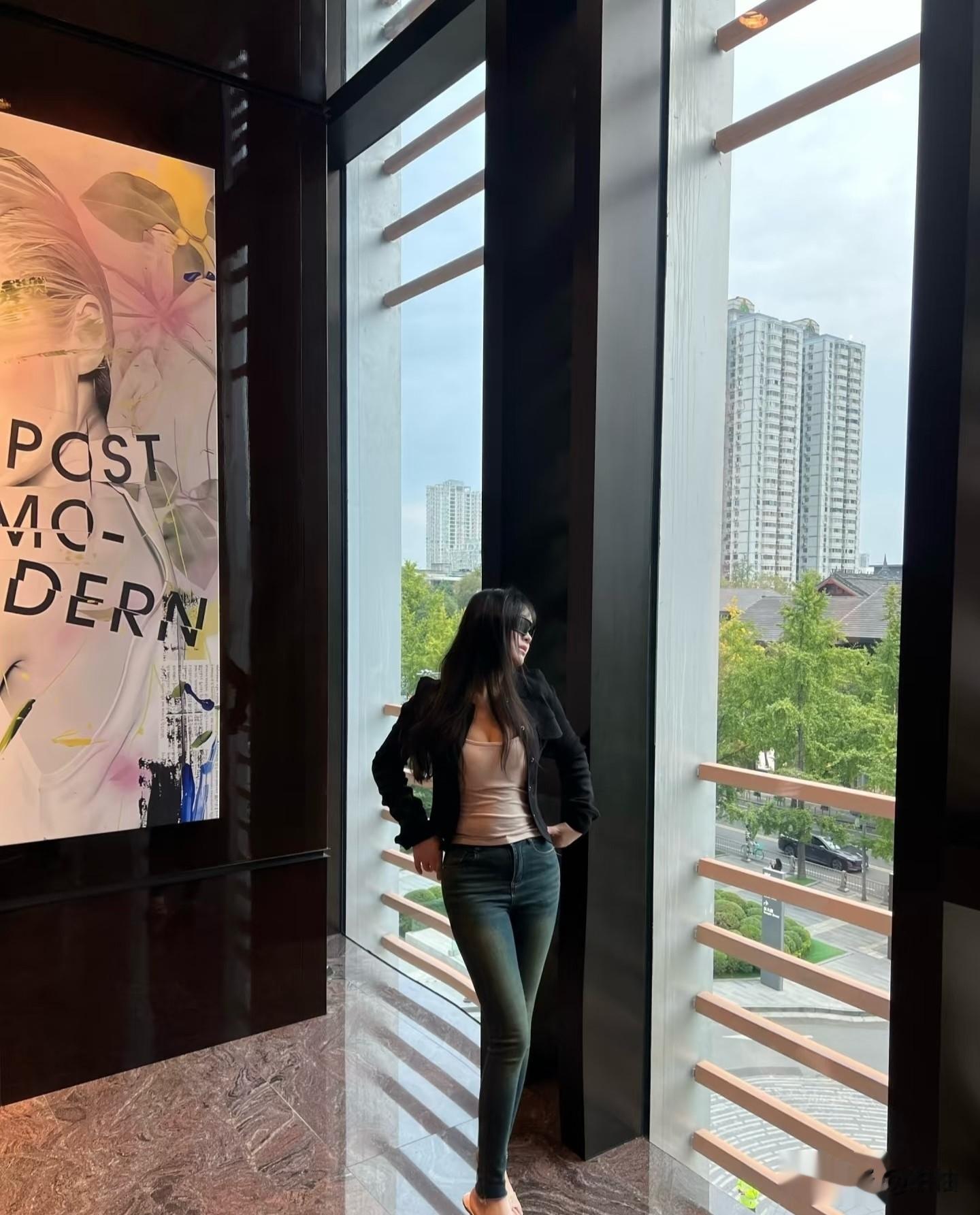 她这次的搭配简单却不失巧思,浅蓝色紧身牛仔裤和高跟鞋的组合,清爽又有女人味。紧身牛仔裤很贴腿,勾勒出身形线条,从腰到脚踝的流畅感让人一眼舒适。裤脚略微收束,刚好落在脚踝的位置,把高跟鞋的纤细很好地衬托出来。