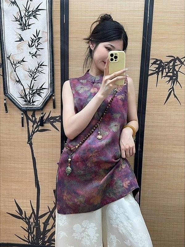 新中式紫色晕染衬衫女款2025新款夏轻奢高级感超独特漂亮气质上衣