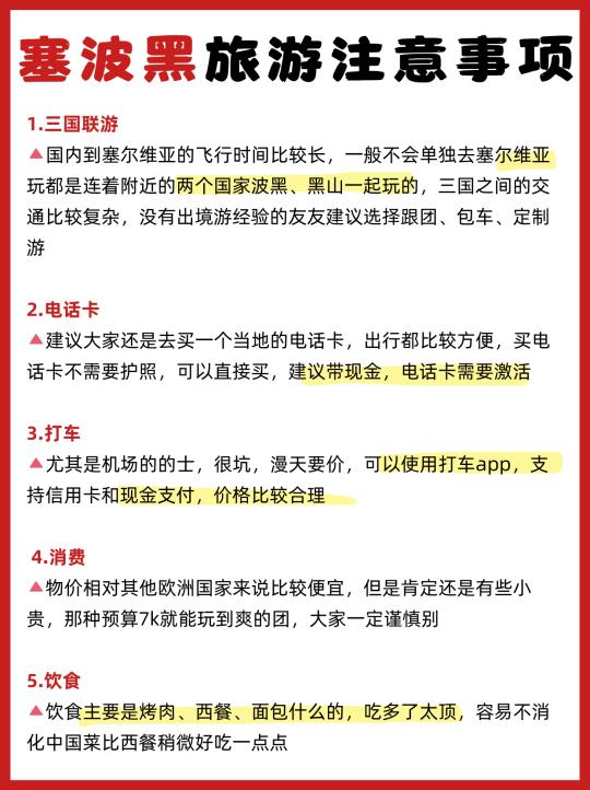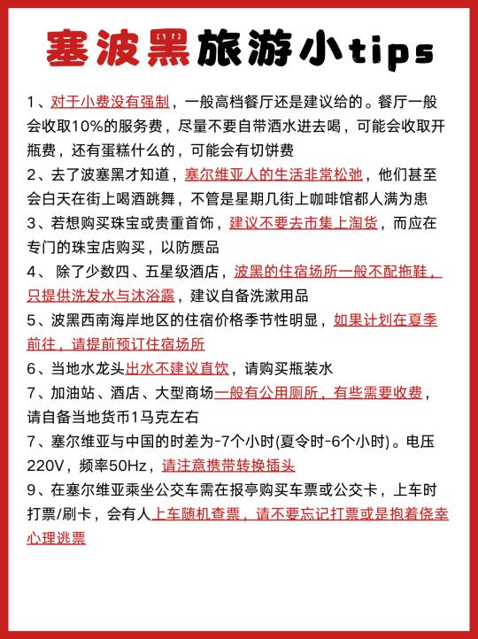 🤔通过这次踩雷经验,总结了一篇塞波黑旅行实用攻略,内附行程安排,希望能帮到大家!