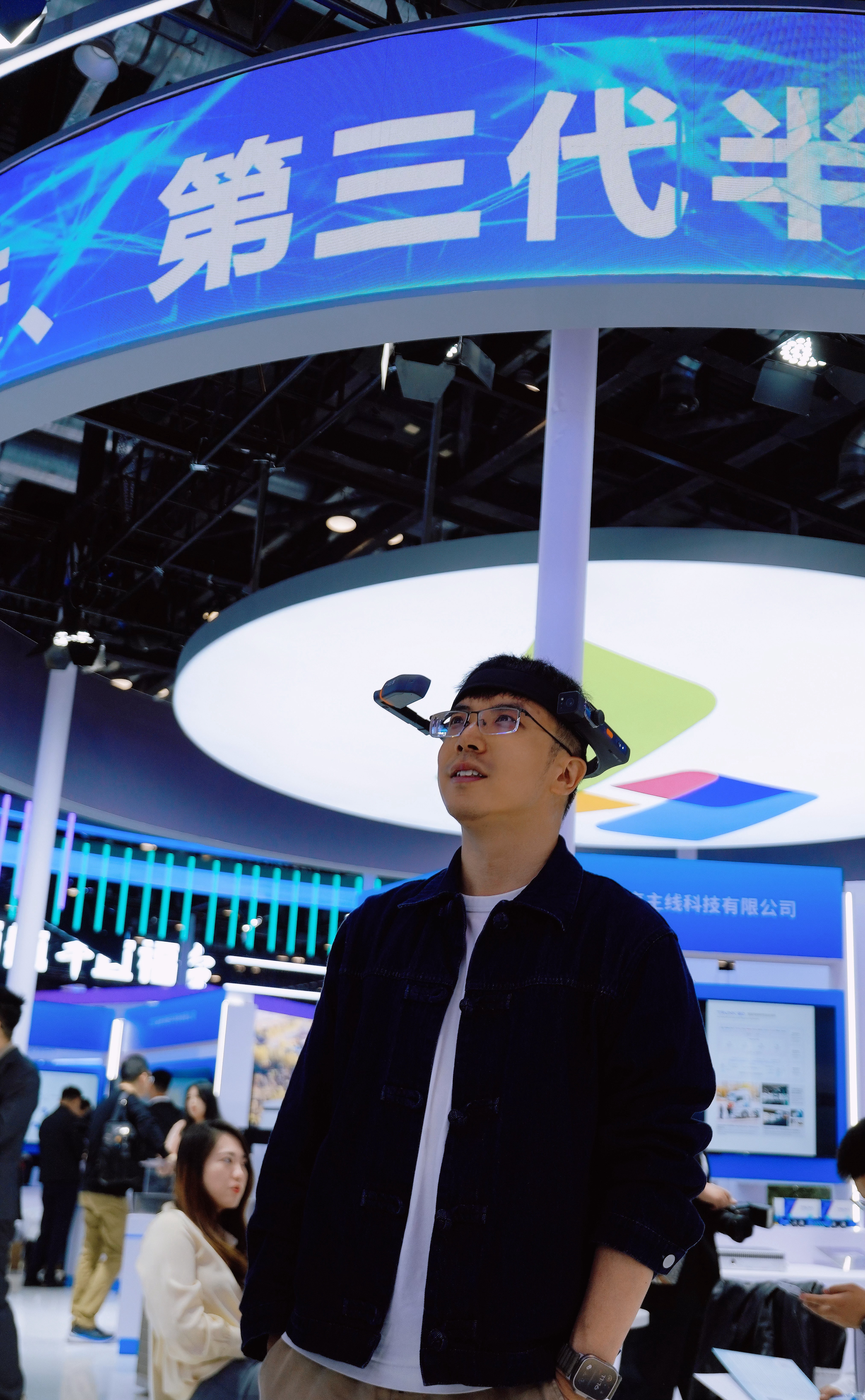 展台上还摆着不少硬核宝贝:像水晶果冻般的「可降解生物材料」,讲解员说能替代传统塑料;还有闪着金属光泽的「第三代半导体晶片」,指尖划过仿佛触碰到芯片产业的“中国芯”脉搏……