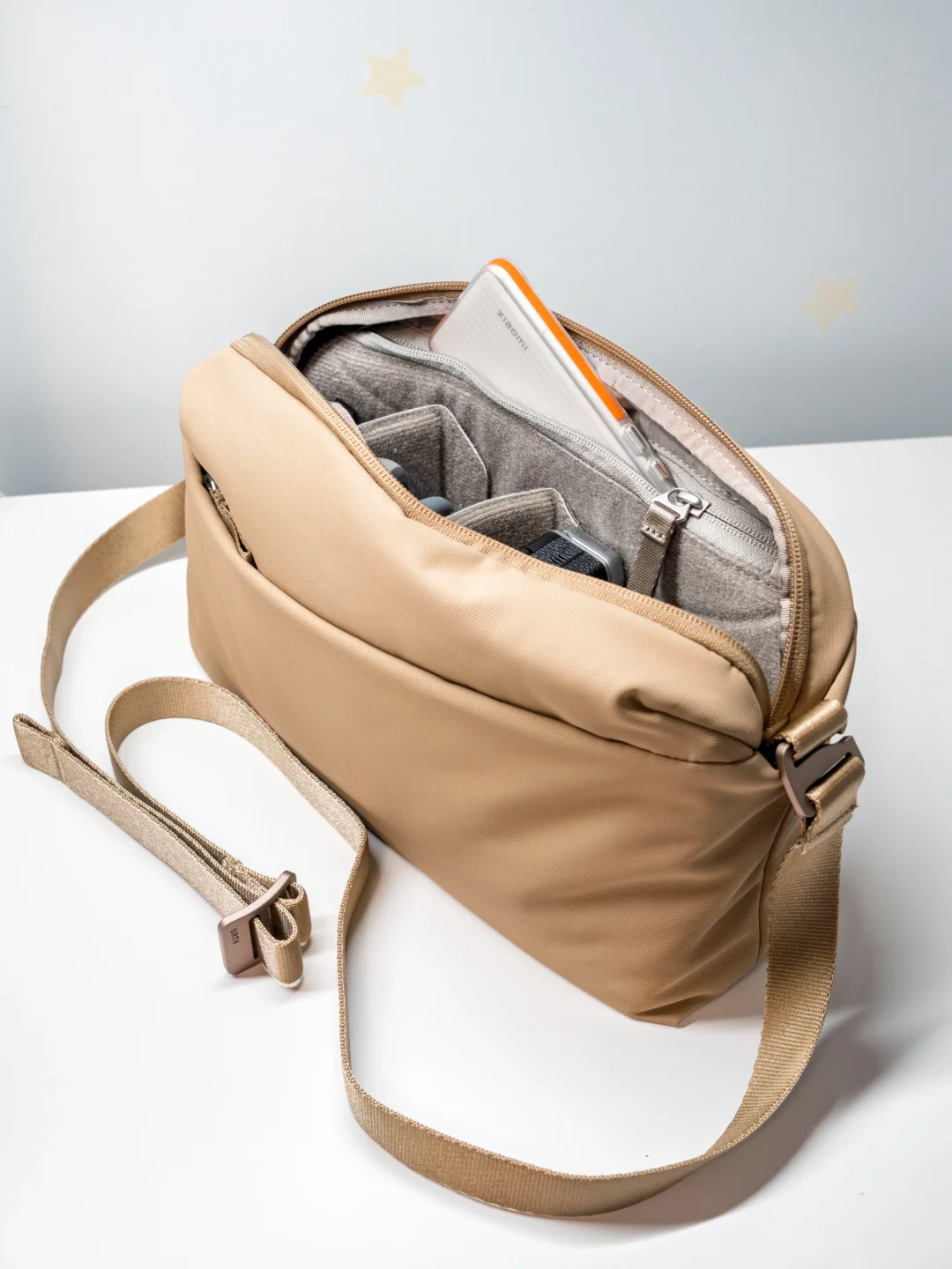 外观设计简约好看,还获得过红点设计奖认证,材质环保,防水耐磨还减碳,5.1L 小身材塞下XM5+小配件轻轻松松,可调衬垫隔板,自由分区保护爱机,可调肩带,斜挎肩背任切换,贴合曲线久背不累!
