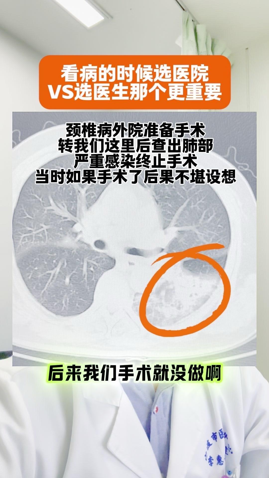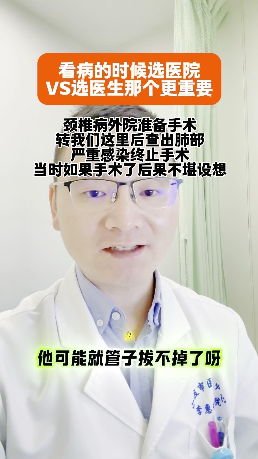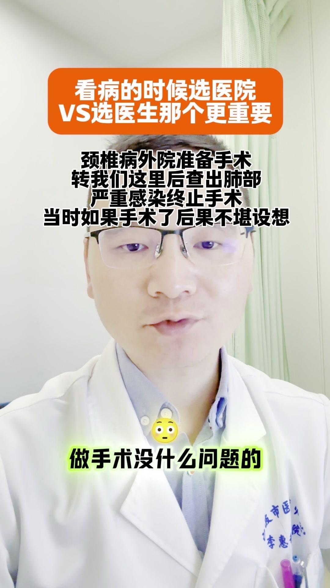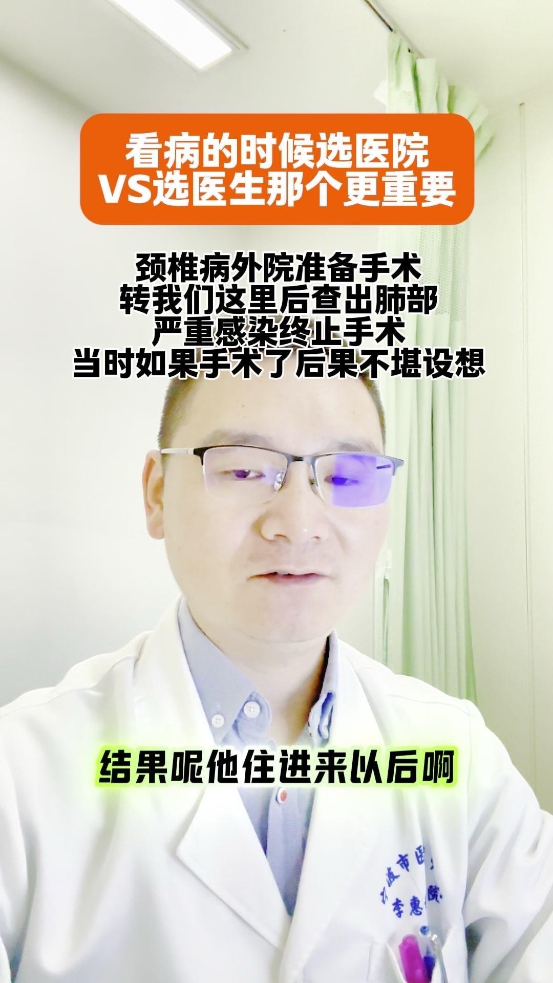 看病时选医生还是选医院更重要?🤔最后的这个4+4的这个事件,会把医生和医院这个风口那里,那这个事件本身,我们现在也不需要做过多的评论。 今天我就想聊一下,就是我们看病时选医院选医生的问题。 🤔观念: 很多人在看病时,就会先设定一个条件,我们去某某医院,然后再选择某某医生。 🤔去好的医院的概率: 这个其实大家心里自己有数,当然去好的医院,就是大家认为好的医院,可能这种遇到好的医生概率大,但是这个不是100%的。 🤔分享一个很简单的病例: 这个病人来时是一个颈椎病的设计,他本来原先啊是到我们一个所