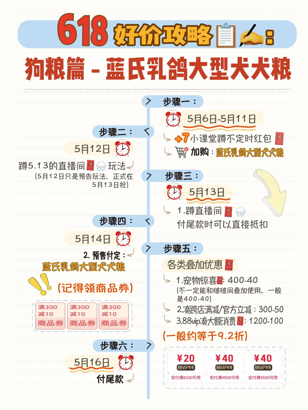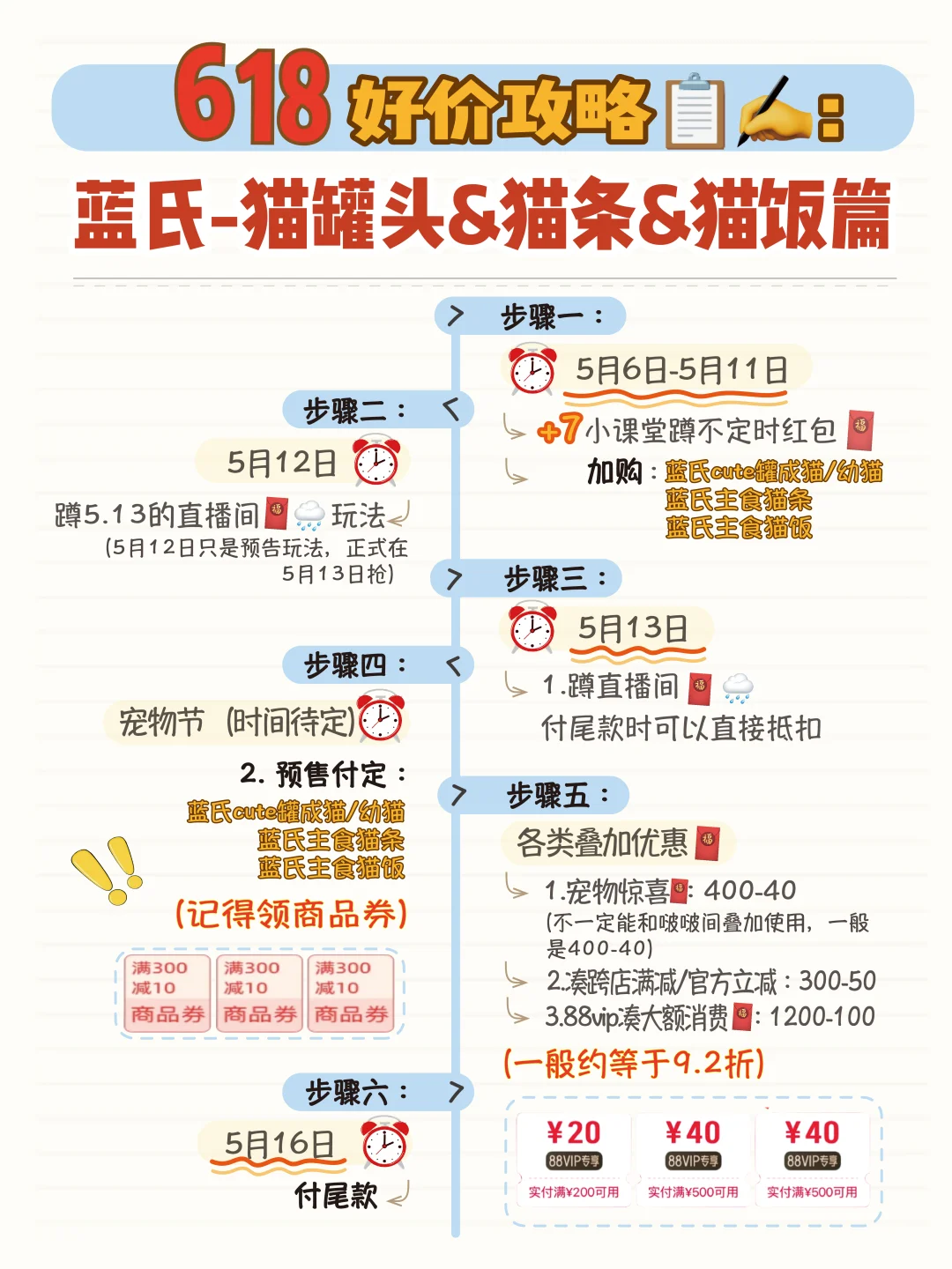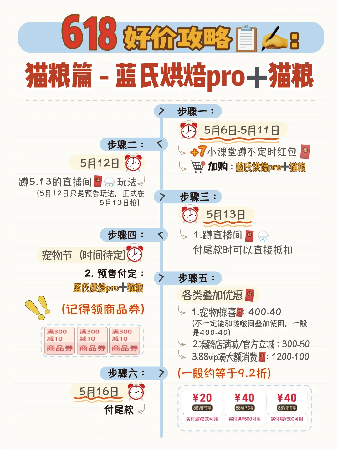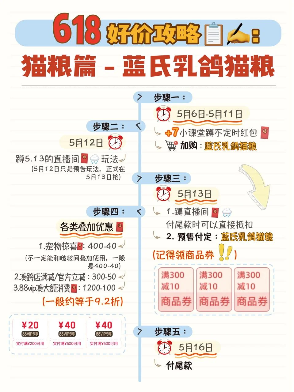 6·18蓝氏猫粮/狗粮好价攻略!看到就是赚到!(附详细时间表!⏰) 一、猫粮篇: ⭐蓝氏乳鸽猫粮 👍🏻老牌国货,经典乳鸽款,大促必囤~ +7啵啵间领⭕:549元/8包,289/4包 ⭐蓝氏烘焙Pro➕猫粮 👍🏻100%全鲜肉,低温烘焙,平时舍不得囤,大促直接闭眼冲! +7啵啵间领⭕:445元/4包,235/2包 二、猫罐头&猫条&猫饭篇: ⭐蓝氏cute罐成猫/幼猫 👍🏻适合小鸟胃,一餐一罐,适口性很好。 +7啵啵间领⭕:105r/24罐 ⭐蓝氏主食猫条 👍🏻高肉高蛋白,主食级营养。猫咪超爱 +7啵啵间领⭕:105r/84支 ⭐蓝氏主食猫饭 👍🏻“蒸”鲜猫饭,主食级营养。含肉量很高 +7啵啵间领⭕:129r/30包 三、狗粮篇: ⭐蓝氏乳鸽小型犬犬粮 👍🏻9种新鲜肉蛋蔬,美毛,养肠胃 +7啵啵间领⭕:499元/8包,259元/4包 ⭐蓝氏乳鸽大型犬犬粮 👍🏻9种新鲜肉蛋蔬,美毛,养肠胃 +7啵啵间领⭕:699元/4包,359/2包 叠加88VIP,啵啵间🧧优惠🍐度更大! 具体凑单步骤参考📒哦! 618李佳琦李佳琦直播间618攻略618大促养猫用品推荐新手养猫宠物用品蓝氏蓝氏乳鸽猫粮狗粮养狗养宠宠物节