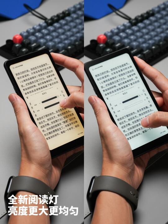 刚上手时我还纳闷:这不就是个手机?仔细一看才发现是掌阅iReader新出的Tango,157g的重量揣兜里都行,有机硅素皮的背板防滑又亲肤,单手举着看半小时手腕都不酸。这就是揣在兜里的电子榨菜! - 深度体验两周想说:这反应速度绝了!APP几乎秒开不卡帧,左右两侧实体按键完全符合手机用户的操作直觉,轻按就能翻页。最惊喜是左上角的“任意键”,我设置成全局刷新后彻底解放双手,再也不用在屏幕上划来划去清除残影。5种显示模式适配各种场景,被窝里的暖黄光和正午的强光模式都非常护眼。开放系统装啥APP都行,自带的麦克风听书也很方便。系统界面也够清爽,完全不用翻说明书找功能。至于续航?开着快刷模式照样扛用,反正我这种重度用户一周充一次也足够。 - 要是你想找本比手机更护眼、比普通阅读器更轻快的阅读器,这个口袋尺寸的Tango真的可以闭眼入!