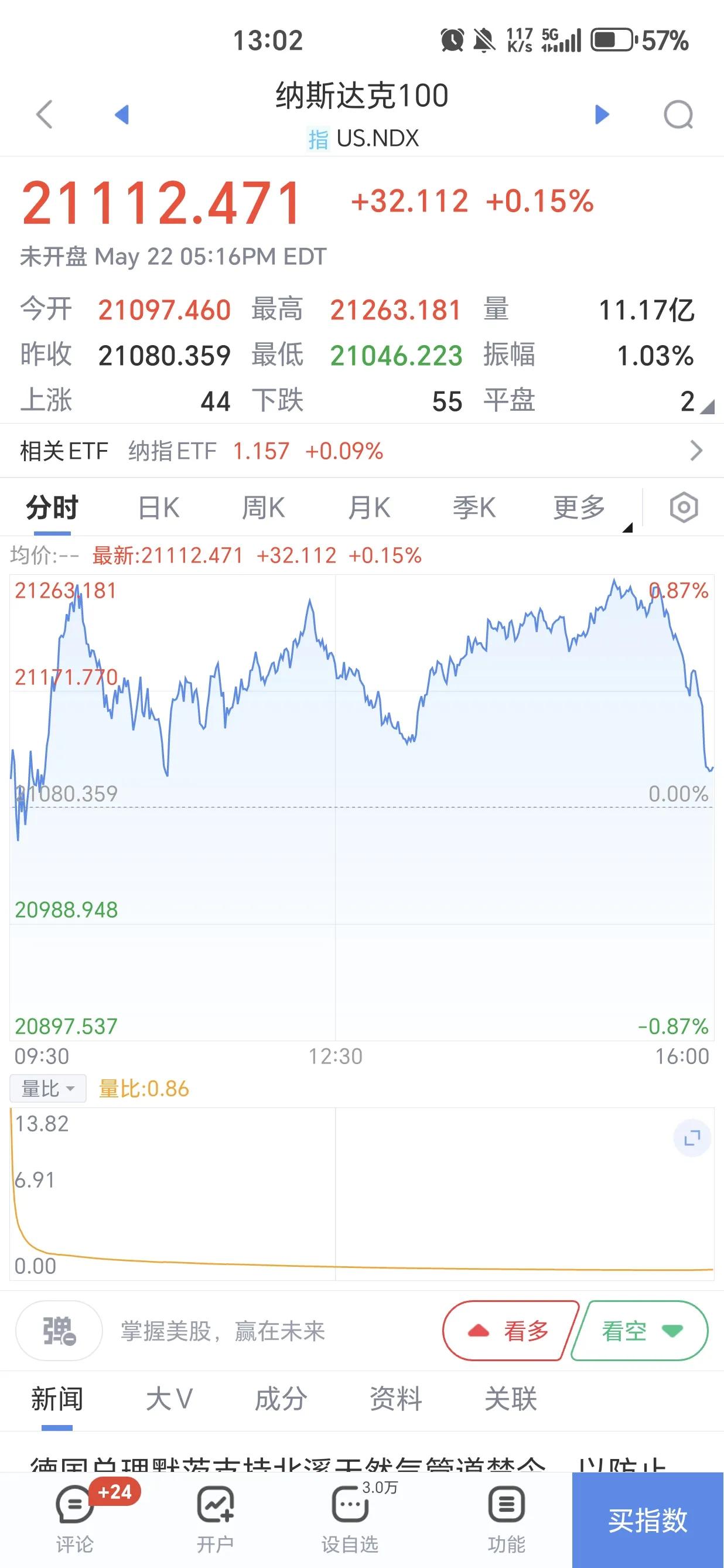 纳指昨夜震荡较大,收盘微涨。 没有什么特别关注的。近期新闻什么美债危机、美国信用