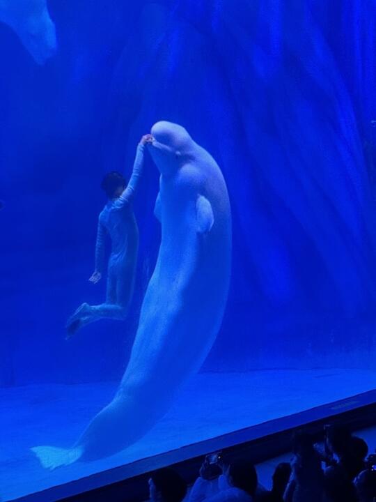 2️⃣冰雪王国:在冰山北极馆看白鲸之恋,白鲸和舞者共舞,画面超浪漫,仿佛置身童话世界