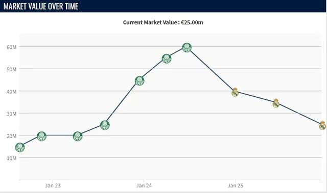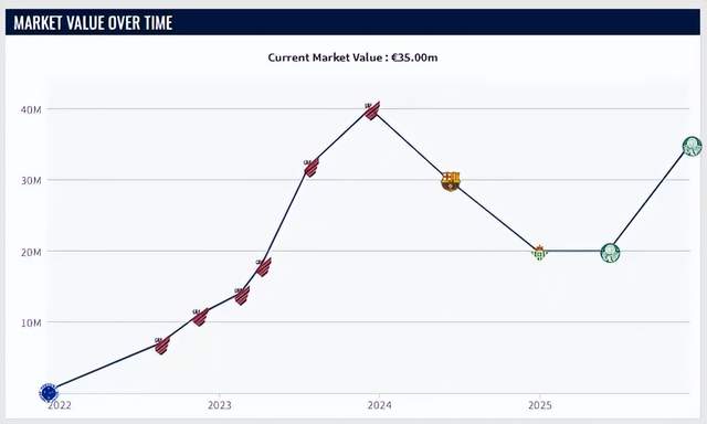 德转已经更新了西甲球员的身价,其中被誉为巴西年轻一代超新星、皇马前锋恩德里克迎来了身价三连降,从2024年6月的6000万欧元,暴跌至如今的2500万欧元。皇马2024年夏窗以4750万欧元的转会费签下恩德里克,但由于年轻球员在皇马完全踢不上比赛,导致恩德里克的身价一跌再跌。恩德里克皇马生涯数据为39场7球1助。