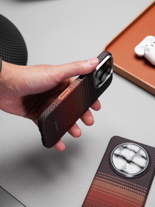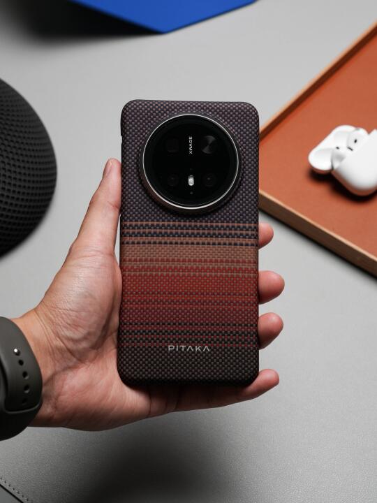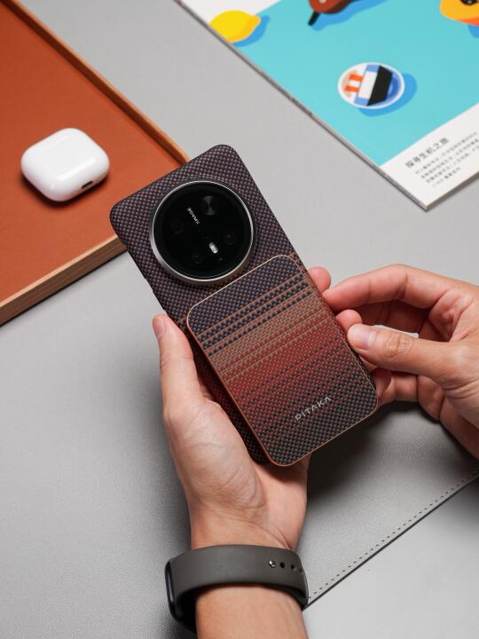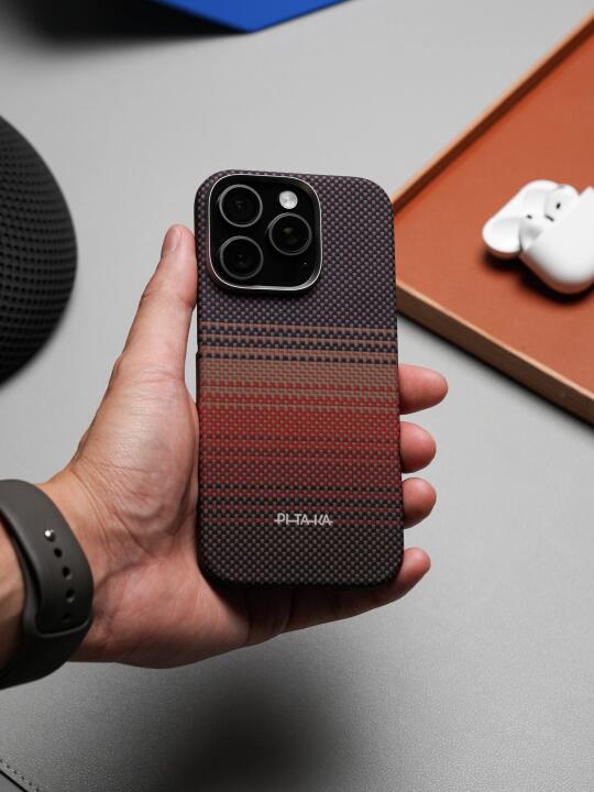 讲真,市面浮织壳一大堆,但能将手感舒服、功能硬核和颜值能打这三点全焊死的真只有Pitaka! - 直接被日落色全家桶美到跺脚!手机壳上的颜色过渡巨丝滑,像把整个落日余晖调色盘倒进壳子里! - 这次Pitaka在苹果16系列的手机壳侧边首次新增了PitaTap按键。别人家还在做镂空,Pitaka直接在手机壳搞了个物理快门键!一体式芳纶纤维全包设计,滑动和按压手感跟原相机键一模一样,这你受的了吗? - 这次华为Mate70 Pro也能用同款!磁吸卡包充电宝和苹果配件全!通!用!安卓党终于不用眼馋MagSafe生态了,真香!