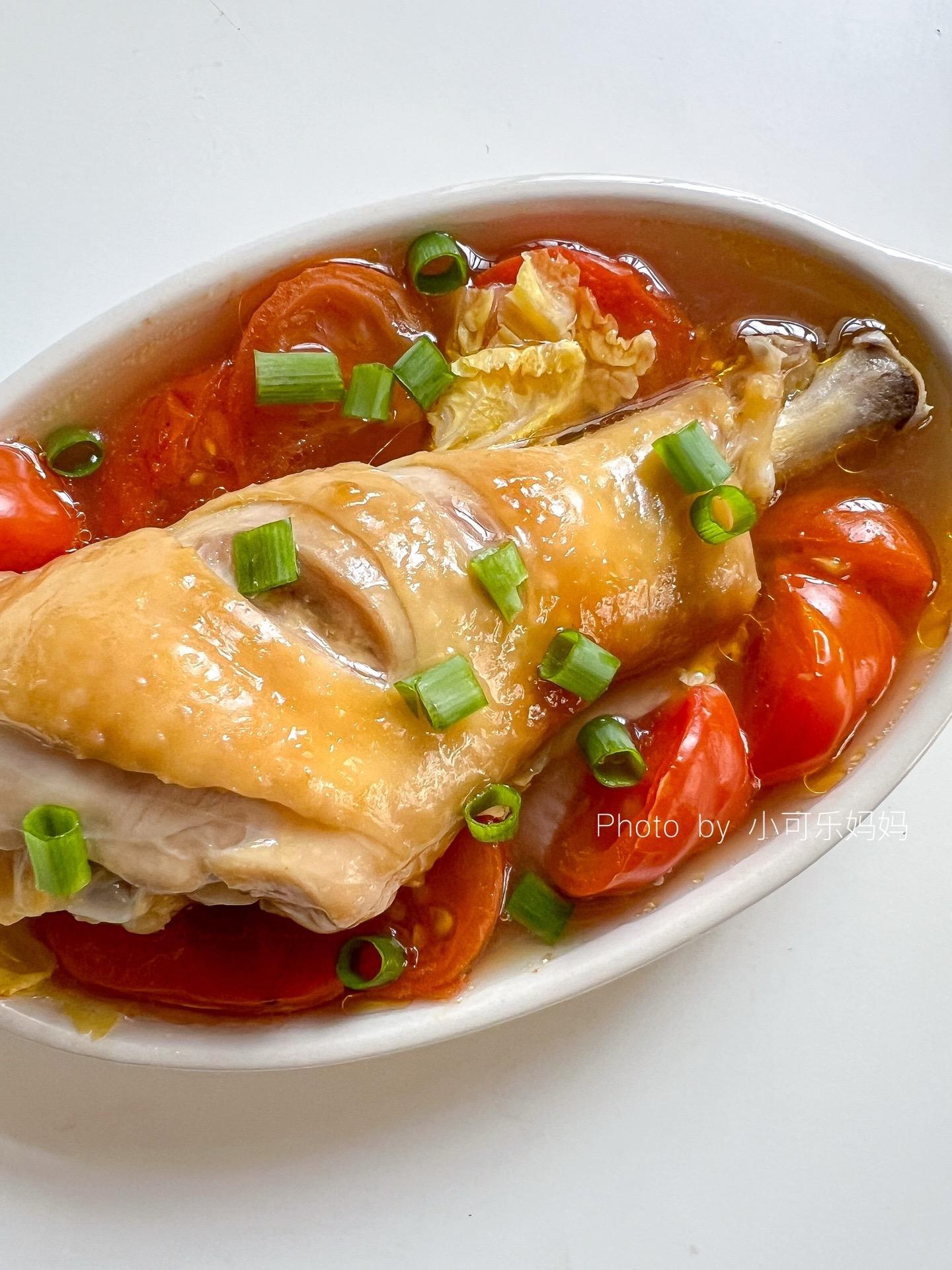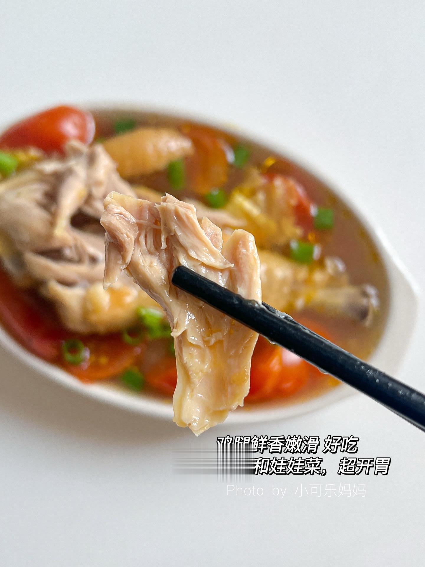 12M+番茄娃娃菜蒸鸡腿🍗鲜香浓郁。有没有爱吃鸡腿的宝宝,这个搭配你...