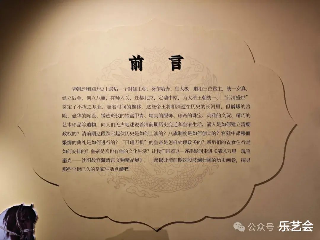 第一部分“筚路蓝缕”,讲述了从努尔哈赤统一女真到满清建立,并最终迁都北京,定鼎中原的过程,生动再现了满族从一个部落联盟逐步发展成为一个强大帝国的壮阔画卷。第二部分“剽悍八旗”,聚焦于清前期八旗制度的创建与发展,以及该制度在军事领域的重要应用,展示了八旗制度及八旗军队在戎马征战、平定中原过程中的关键作用。第三部分“锦衣玉食”,展示了清代皇宫内的服饰与饮食文化,揭示了当时皇家生活的奢华与社会等级制度的严谨。第四部分“宫阙雅趣”,展示了清宫陈设、文化生活等方面,不仅体现了皇室的尊贵与品味,也反映了当时社会的文化风尚。