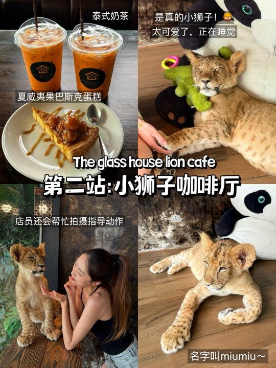 一进门就看到有两只小狮子,其中一只叫miumiu巨可爱,500🐷可以撸5分钟,店员会指导拍摄,拍完可以点店内饮品甜点,都很不错~
