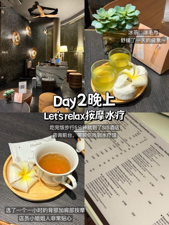 选了1小时背+肩颈按摩,每个项目都有中文翻译非常方便,人均200左右,按摩前会做一个电子小调研,可针对重点部位加深按摩~