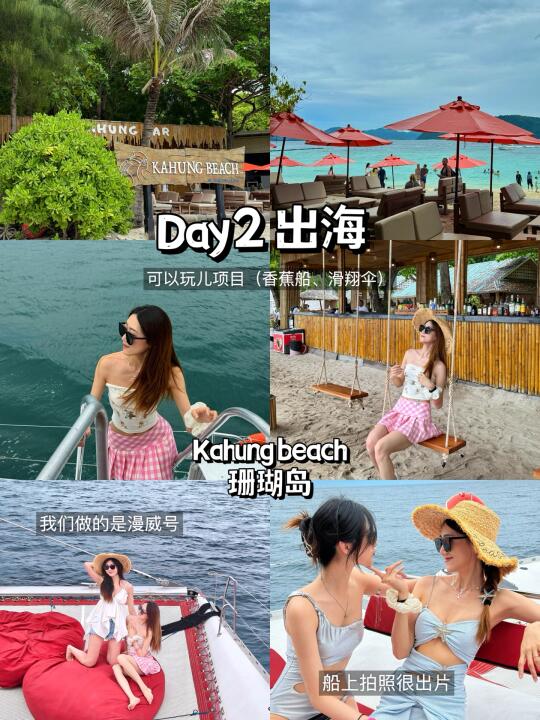 订的漫威号568/人,先去珊瑚岛玩各种水上项目,然后去皇帝岛体验果冻海,猛猛拍夏日辣妹照!最后还可以玩浮潜看鱼群,全程教练带着很安心~