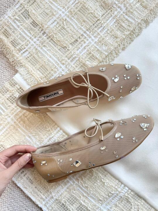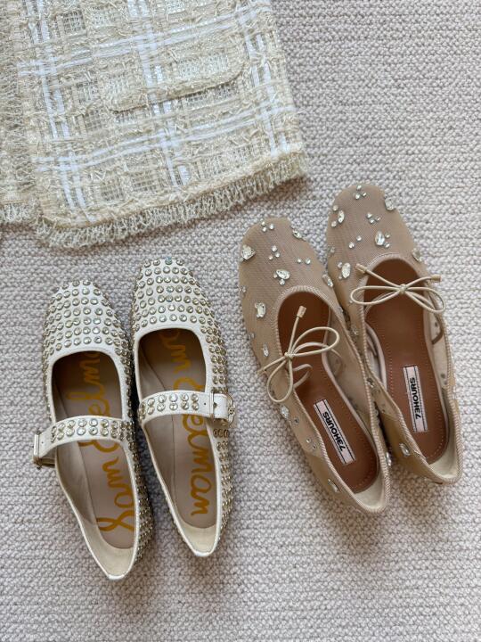 美到失语的夏日玛丽珍们 趁着618活动把两双都带回家了~ sam家是中规中矩的规律圆钻 会比较适合通勤或者做一个点缀 (就是试穿过程中好怕掉钻、尤其走路时候容易前脚碰后脚,谁懂[笑哭R]) 73hours是朦胧梦幻的网纱系列 脚感会更加舒适透气一些~ 不规则的水钻blingbling的 穿上一整个精致感拉满 漂亮到舍不得穿~秒留! 打算下次度假就穿它了! ·