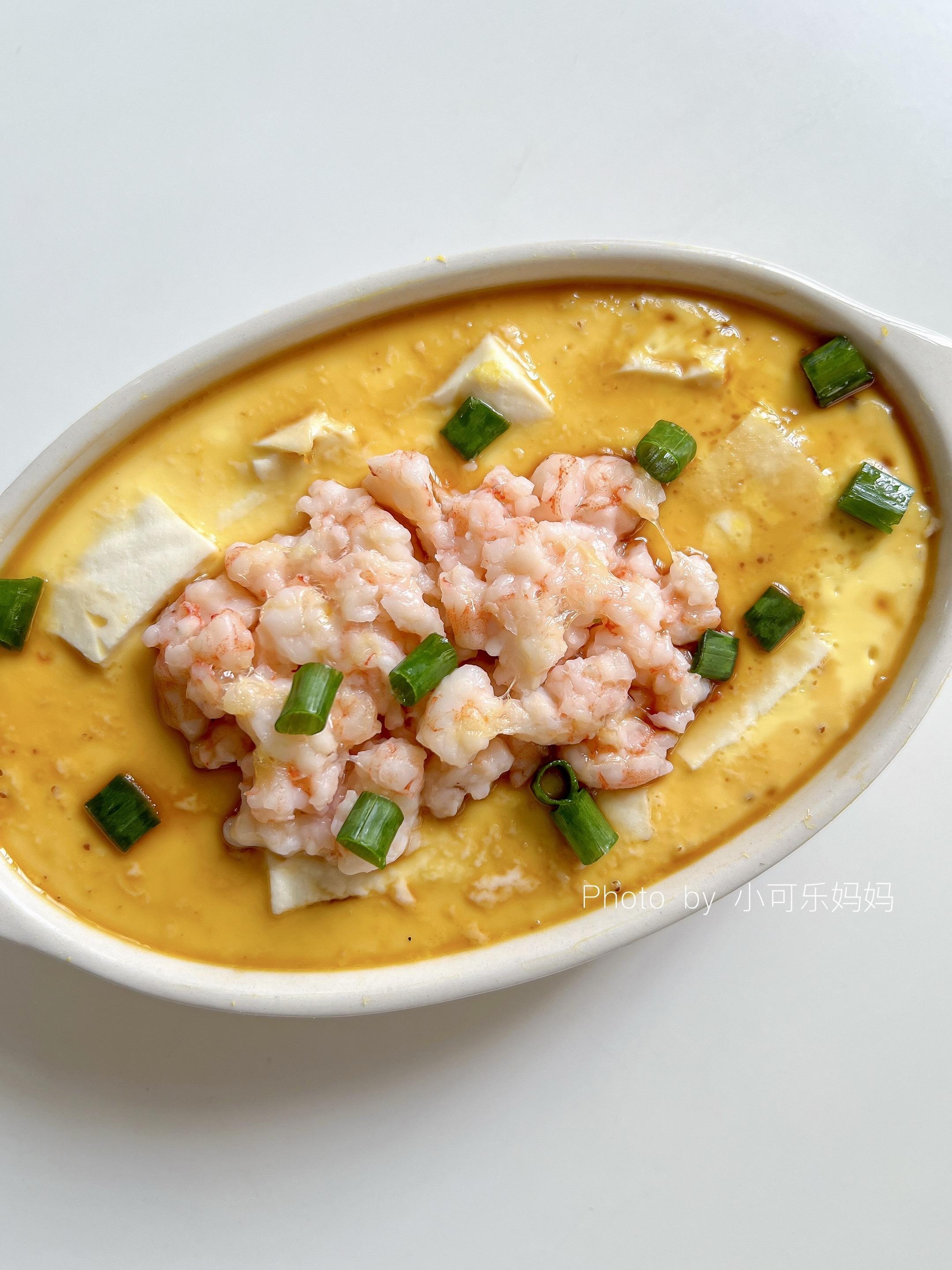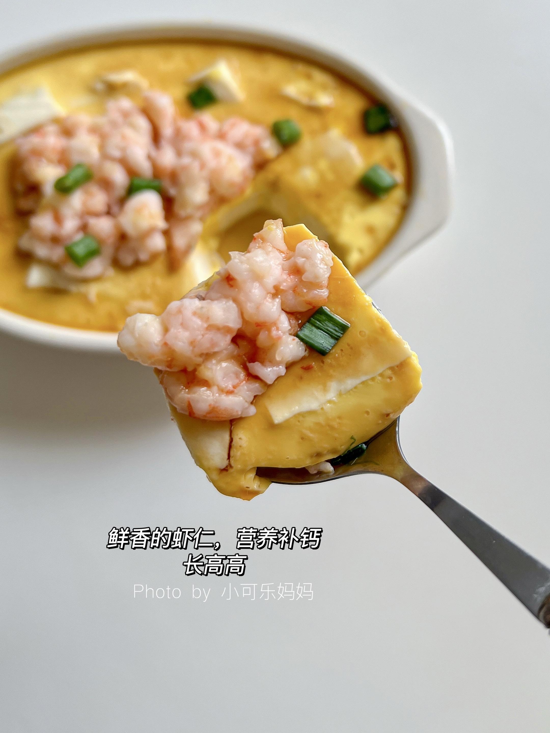 12M+虾仁豆腐蒸蛋✅营养补钙长高高。春天是孩子长高的黄金季节,多给孩...