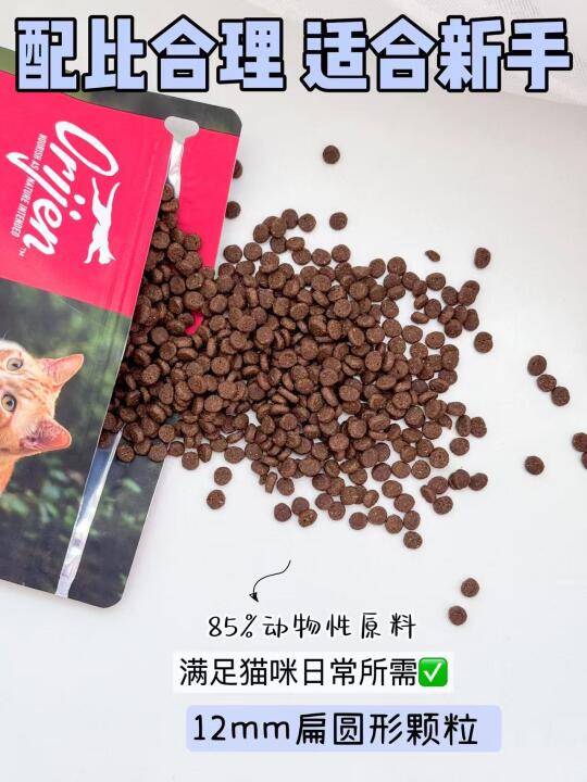 家里有软便困扰的可以看看百利。它是无谷配方,用的散养鸡肉,消化起来没负担。之前我家猫偶尔便便不成型,换了这款后慢慢稳定了,后来发现里面加了蒙脱石,对肠胃确实友好。颗粒是扁扁的,表面有一层肉香涂层,每次倒粮猫都凑过来闻,吃得特别香,适口性这块没毛病~适合肠胃敏感又挑食的崽。