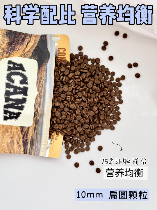 爱肯拿算是老牌进口粮了,品控一直很稳,没出过什么岔子。75%的动物成分,蛋白质和脂肪比例合适,我家猫吃着体重保持得很好,不胖不瘦很匀称。颗粒是扁圆紧实的那种,咬起来有嚼劲,适合需要控制体重或者牙齿需要锻炼的猫。不知道换什么粮的时候,选它基本不会出错,属于“盲买不踩雷”型~