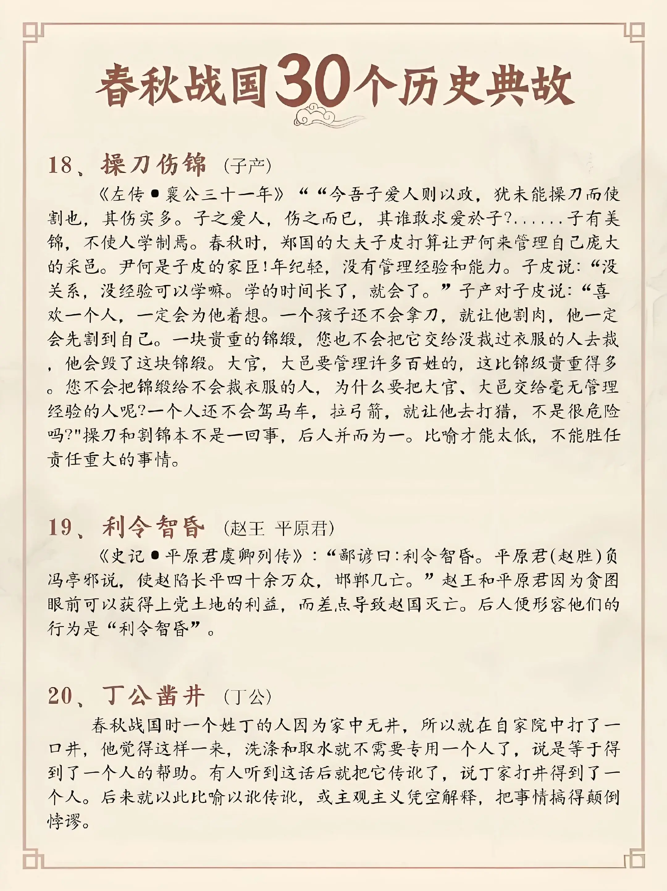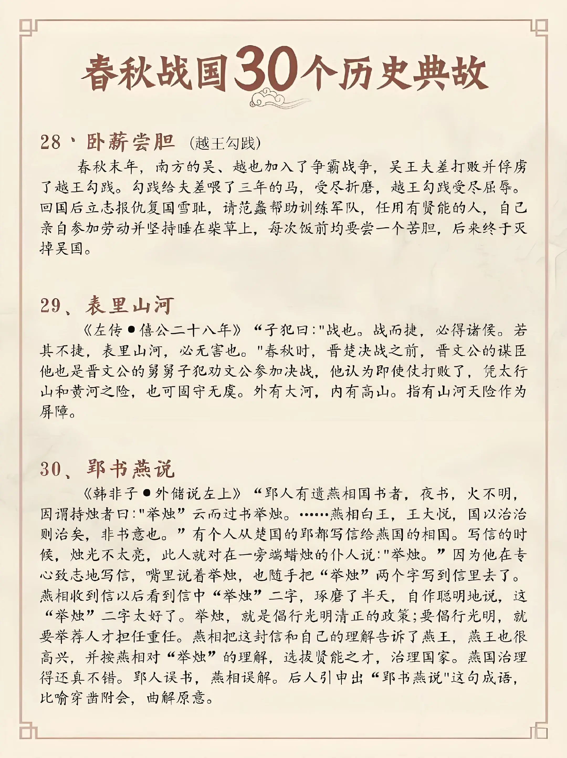 春秋战国30个历史典故。春秋战国”30个历史典故,全都给大家整理好在这...