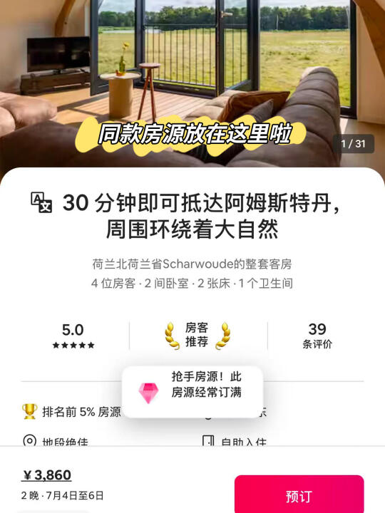 ✅像这种高评分房源民宿基本上都是很抢手,建议1-2个月在Airbnb爱彼迎提前预定哦~