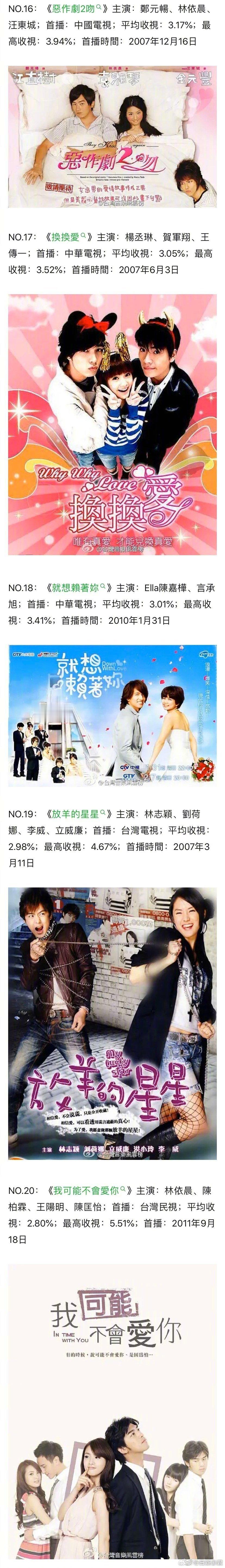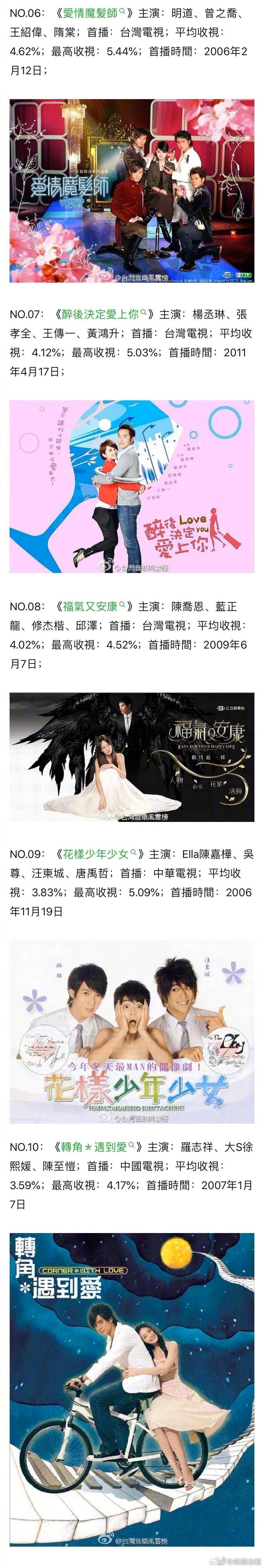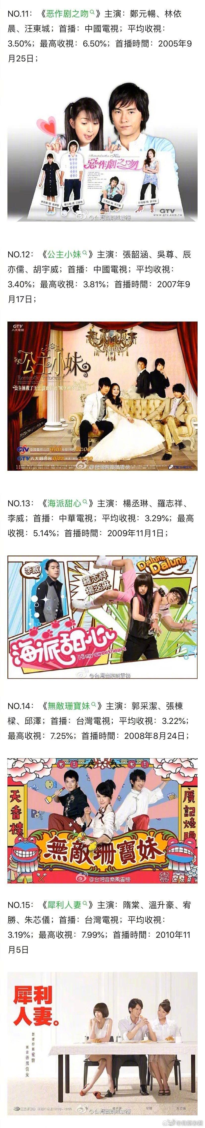 台湾偶像剧历年收视率排行榜TOP20,你看过几部?不知道的还以为出新台剧了