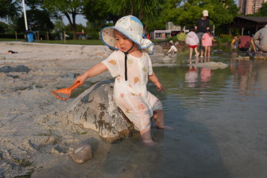 大宁公园的白沙滩遛娃胜地一直声名在外,找个人少的下午体验一下,开车建议停在北门,进门一两百米的样子就到白沙滩了,目测50个左右的地面停车位~周末要赶在9:00以前来。 一定要带好替换的尿布湿和衣服,带一套挖沙玩水的工具~然后就可以尽情享受沙滩了🏖️主要是欣赏下新买的sony zve10二代相机~