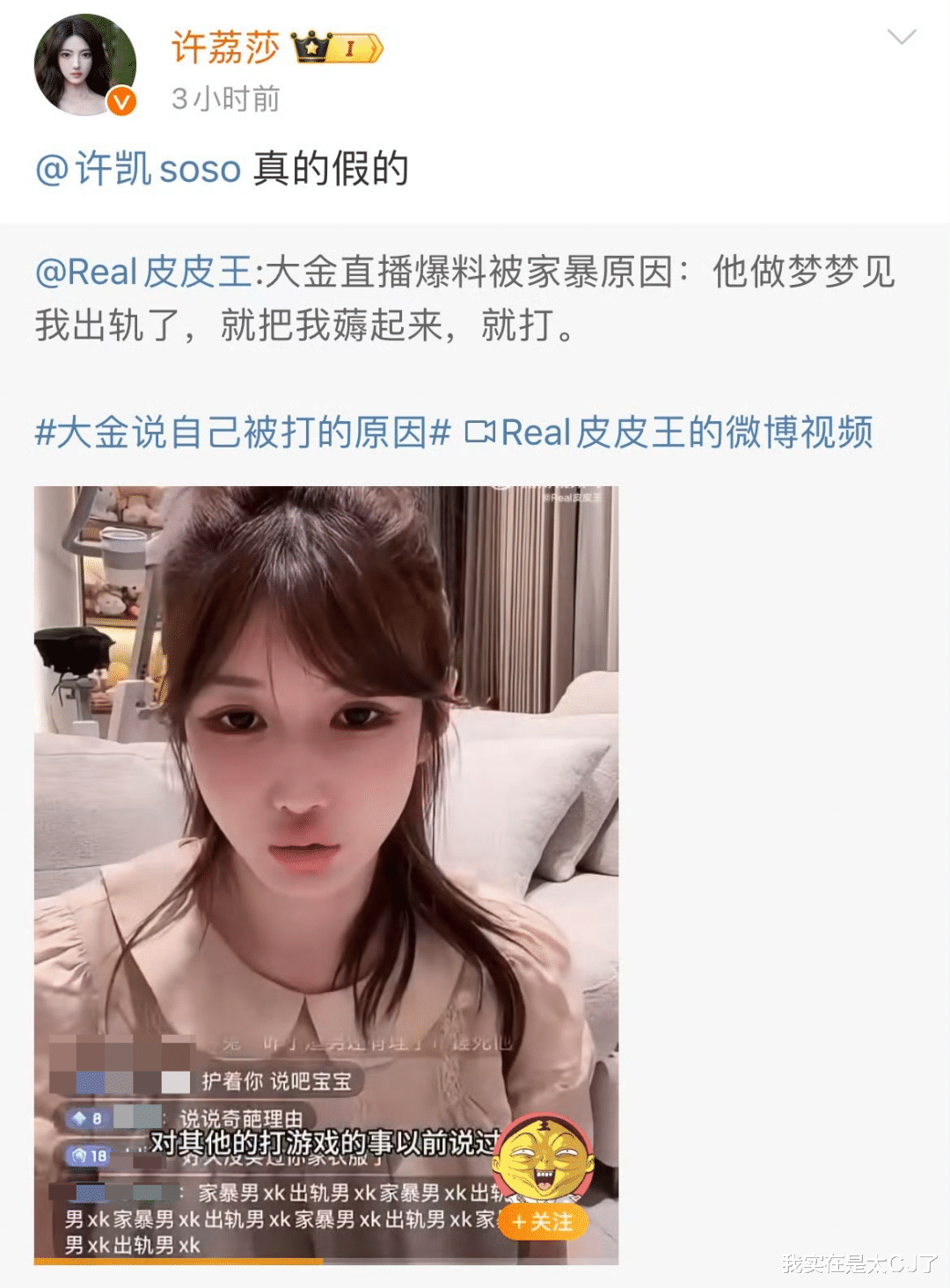但全网都见过大金脸带淤青那张图了,许凯粉丝竟然还能扒拉出一段他当街下跪的视频说“反转了反转了家暴子虚乌有”👇