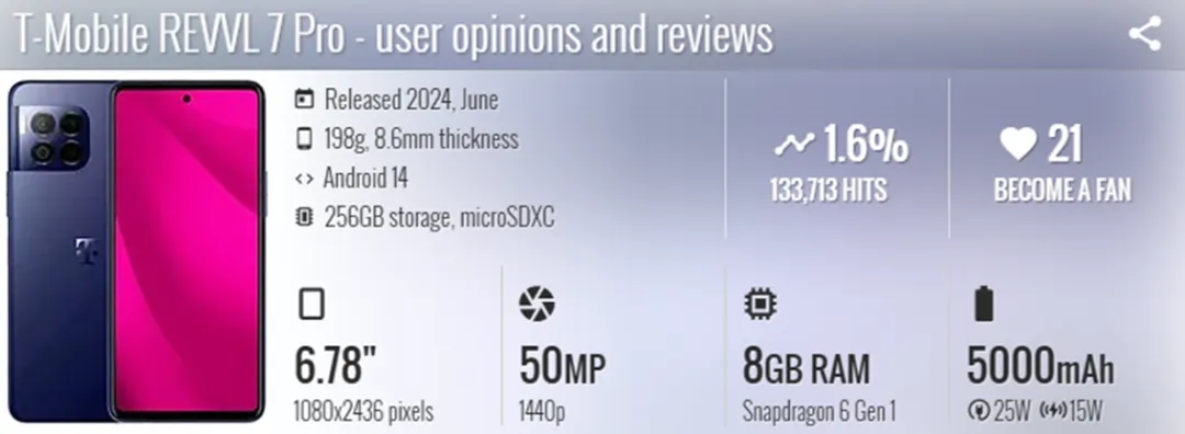 敏锐的观察者很快发现,其公布的规格——包括6.8英寸AMOLED屏幕、5000万像素主摄+2MP景深+2MP微距的三摄组合、12GB+256GB存储、5000mAh电池及20W快充方案——与T-Mobile在售的REVVL 7 Pro 5G手机(已知由中国闻泰科技代工)存在惊人的高度相似。