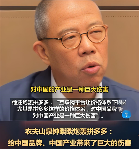 钟睒睒前段时间还在炮轰拼多多,指责拼多多的低价策略对国内品牌和产业是一种巨大伤害。