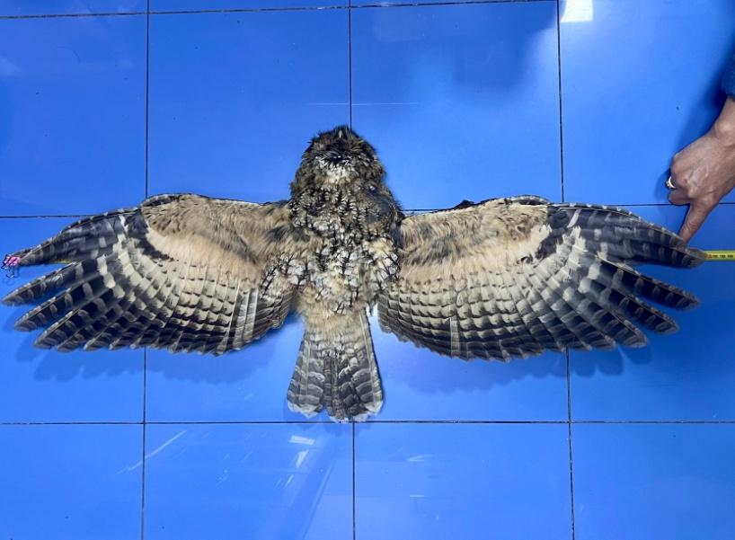 经尹军初步辨认,这只猫头鹰是灰林鸮 —— 一种在上海此前仅有传闻记录,却无文献、影像或声音佐证的稀有鸟种。根据《上海市鸟类名录 2024》,上海已记录野生鸟类 534 种,而这只灰林鸮的出现,本应填补名录中的空白,成为城市生态改善的有力见证。解剖检查更让这份遗憾加倍:这只雌性灰林鸮体重 516 克、体长 42 厘米,翼展可达 100 厘米,胸部龙骨凹陷、肌肉饱满、脂肪储备充足,是完全健康的成年个体。