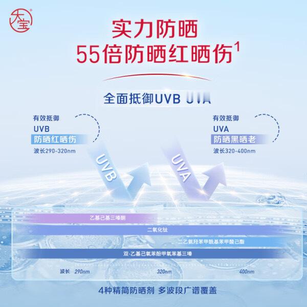 【JD到手价59.9】大宝清透修护防晒乳,SPF50+高倍防晒,专为敏感肌设计,