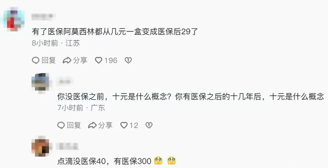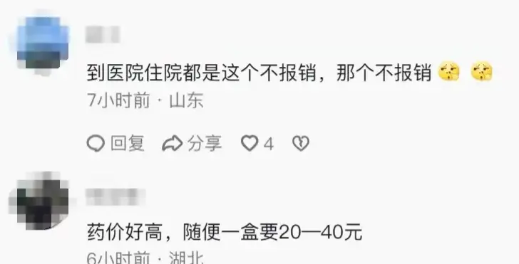 也有网友说去医院看病报销问题。他说陪父母去医院的时候,发现很多药都不能报销,只能自掏腰包。