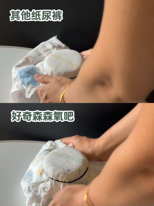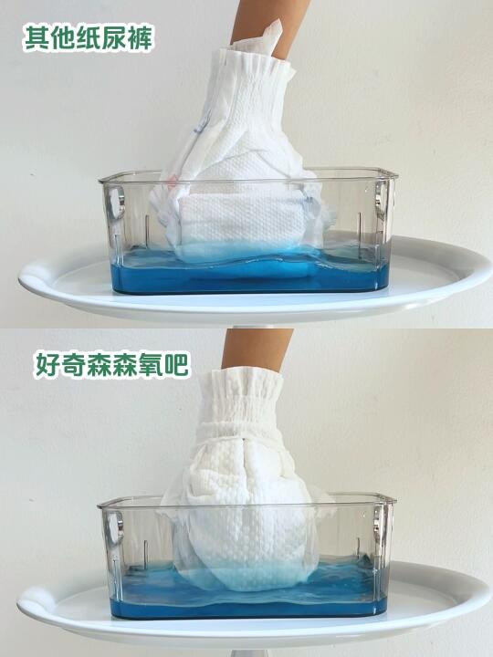 将好奇森森氧吧和另一款纸尿裤分别盖在热水上