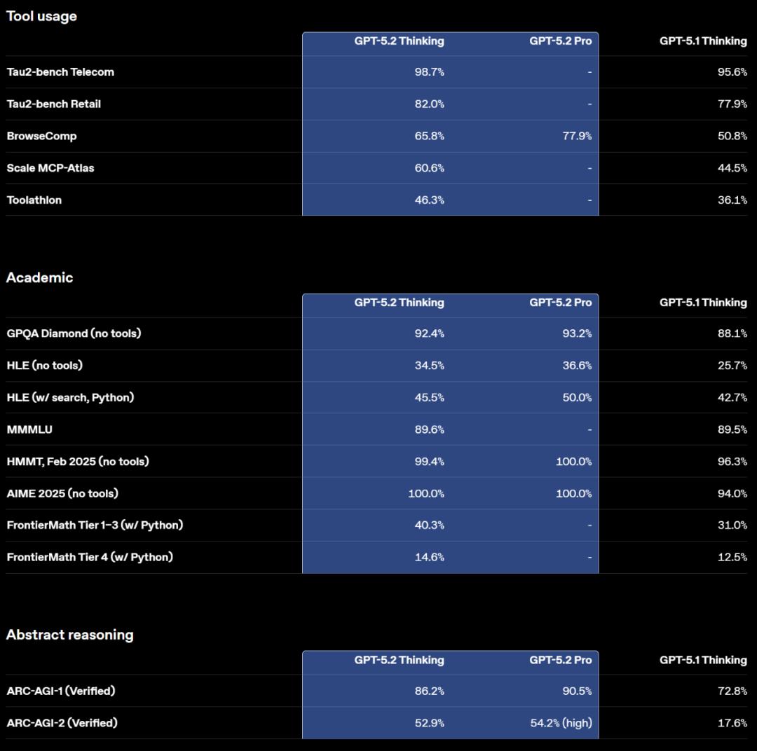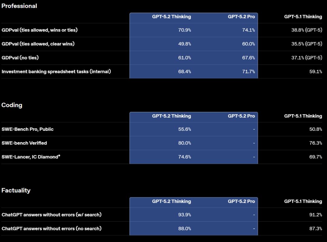 OpenAI 表示,GPT-5.2 在多项行业基准测试中创下新纪录。