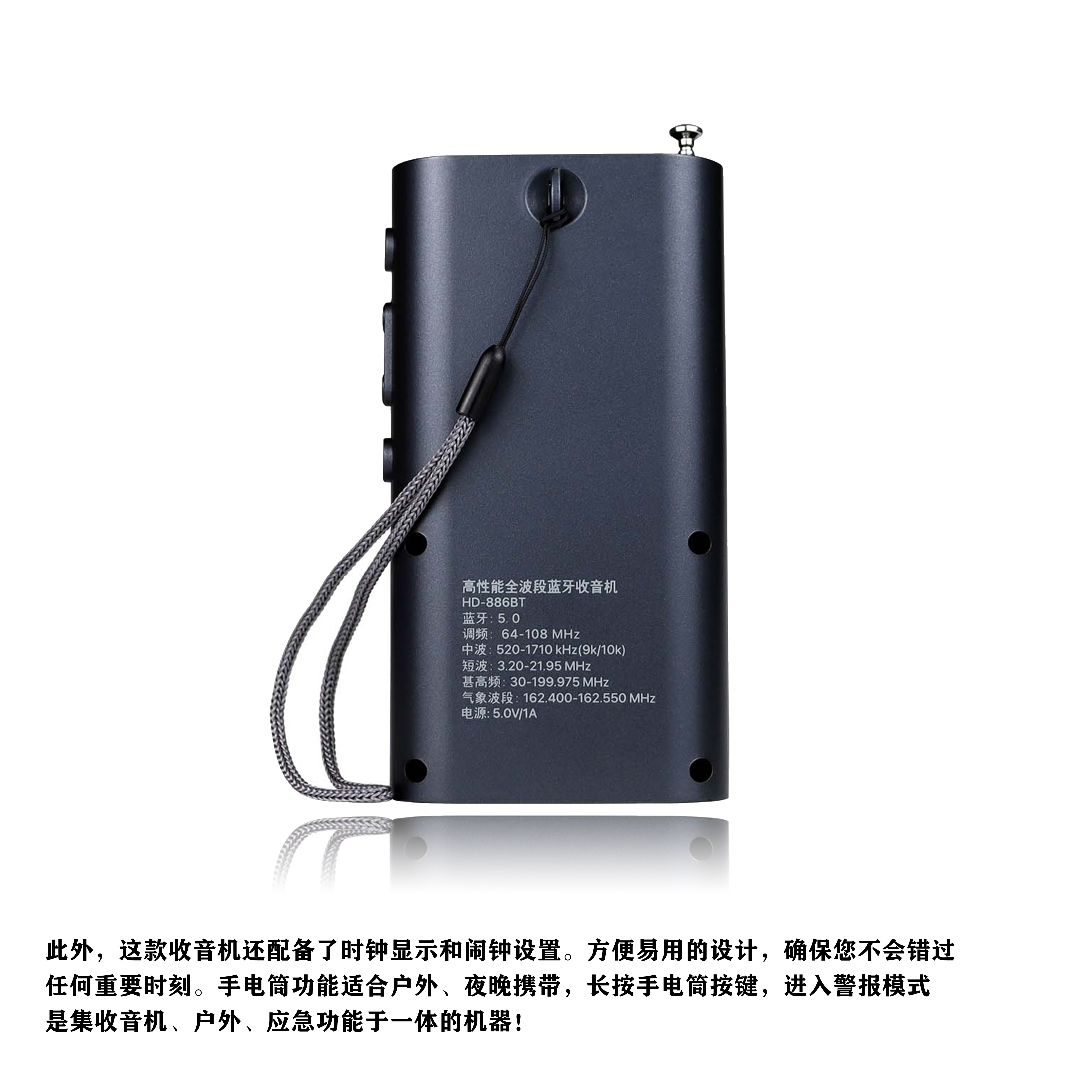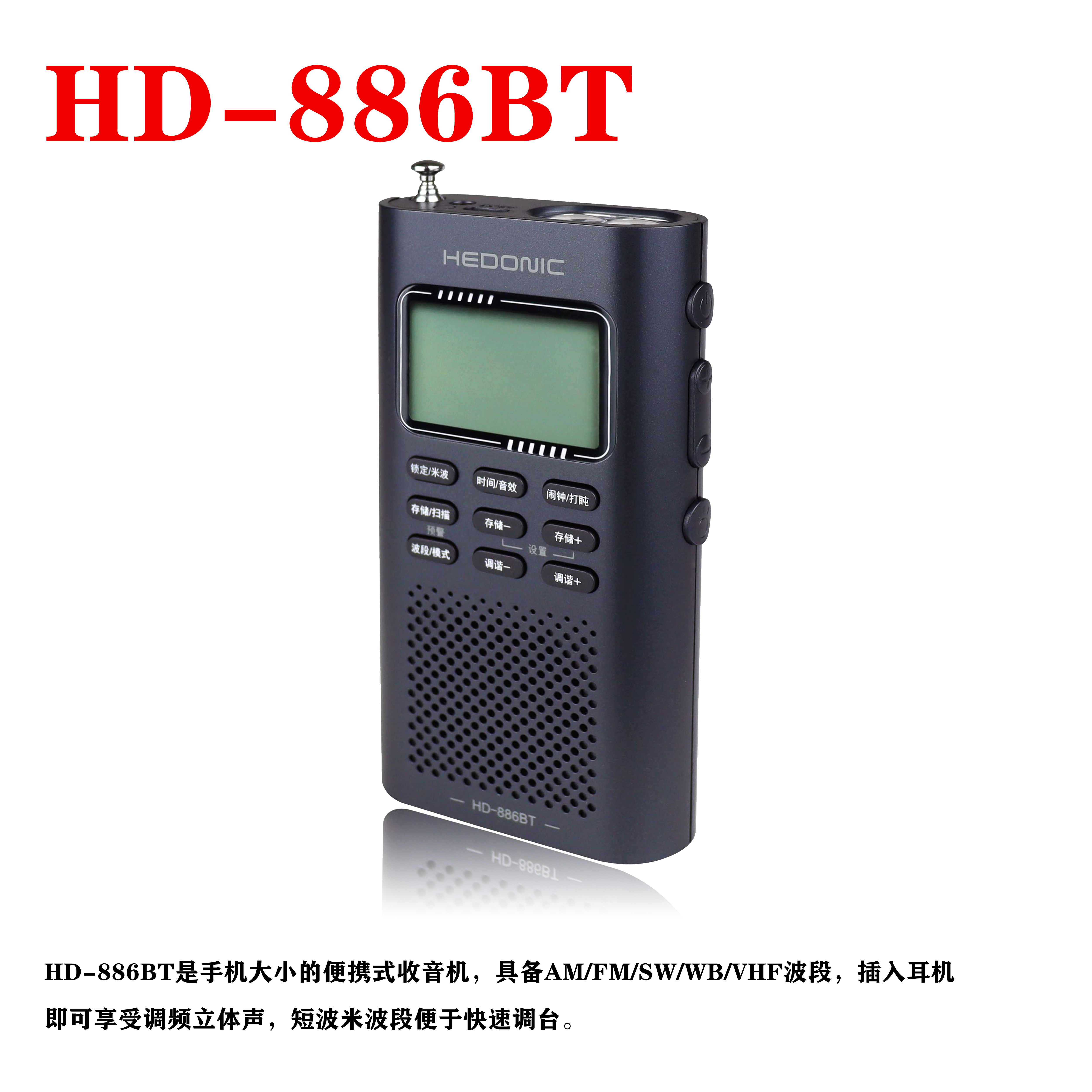 收音机之家10月14日消息,今天,深圳汇德力电子发布了可供在紧急情况下使用的 FM / AM/SW/WB/VHF 全波段蓝牙收音机“HD-886BT”。