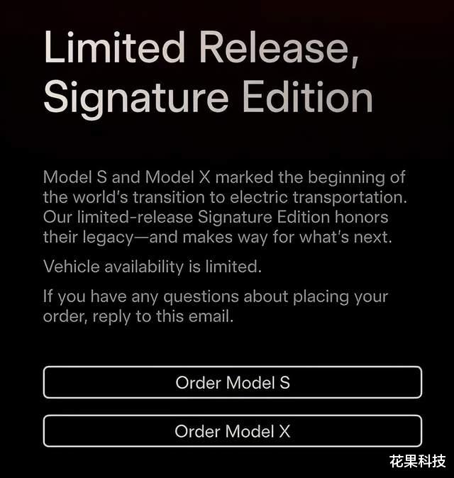 这些最终签名版车型是限量的,包括 250 辆 Model S 和 100 辆 Model X(仅限 6 座)。