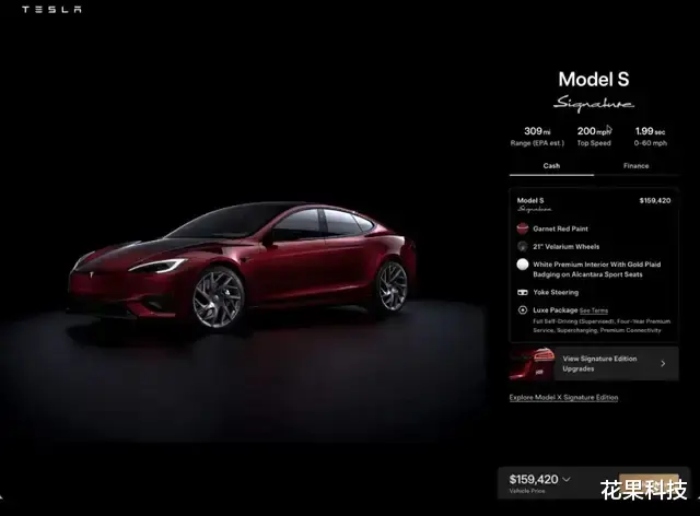 特斯拉 Plaid Model S 和 Model X 的 Signature 限量版车型价格相同,售价都是 159420 美元(约 108.8 万人民币)。
