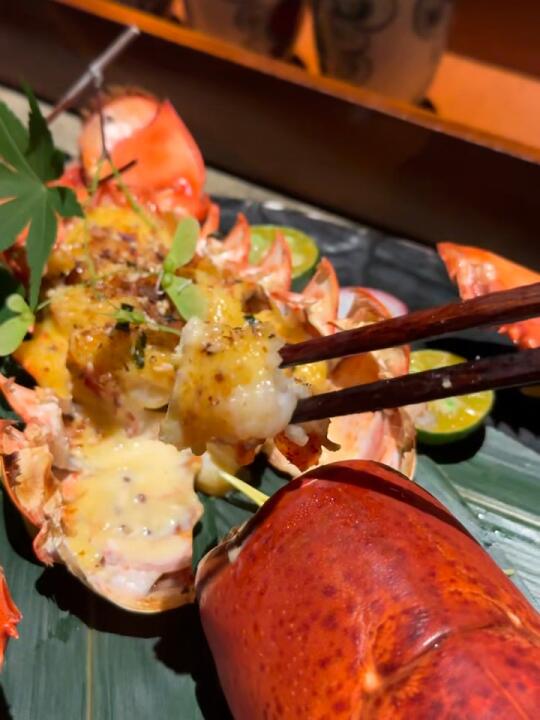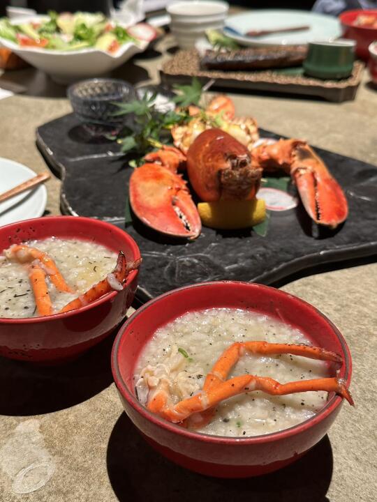 波龙:一虾三吃—芝士焗、炭烤、黑松露粥