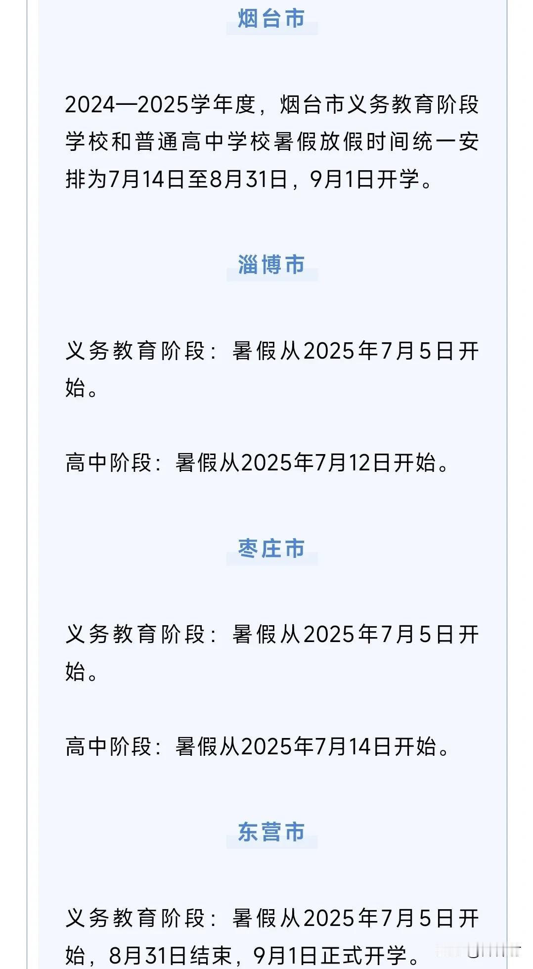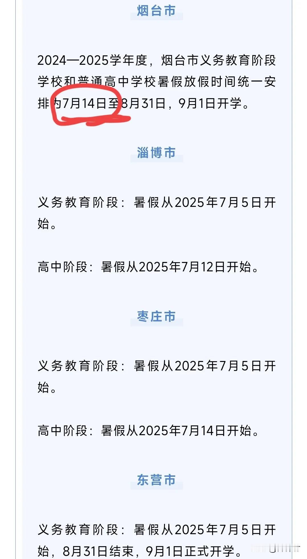 山东中小学暑假时间出炉 天啊,为什么烟台小学7月14日才放,全省其他地市小学都7月5日,比烟台足足早了十天[呆无辜]烟台小学生的天都塌啦[捂脸][捂脸]