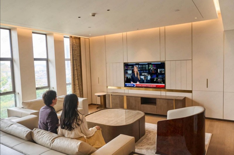 第三, 成为个性化内容娱乐的“大屏影院”。考虑到旅途休憩场景,方案深度整合了主流影视平台内容,并支持便捷的手机投屏。无论是家庭客群共享一部合家欢电影,还是商务人士回顾旅途拍摄的精彩瞬间,高品质的视听体验都能让客房内的休闲时光更加愉悦,延长客人在店内的停留与消费时间,为酒店创造更多增值服务空间。