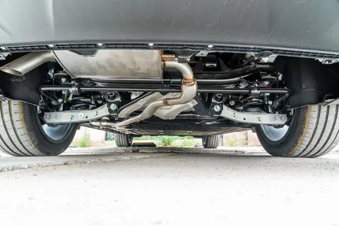 底盘调校同样兼顾了家庭用户的需求,前麦弗逊式独立悬挂加后多连杆式独立悬挂的组合,既能保证舒适性,又有不错的操控性。过减速带或坑洼路面时,能把震动过滤得很干净,坐在车里不会觉得颠,孩子在后排睡觉也不会被吵醒;转弯时悬挂支撑力足够,车身侧倾不明显,开起来很有信心。更贴心的是配备了 FSD 可变阻尼减振器,能根据路况自动调节:走烂路时减振器变软,过滤震动更彻底;高速行驶或激烈驾驶时变硬,车身更稳,不管是日常通勤还是长途出游,都能有舒服的驾驶体验。