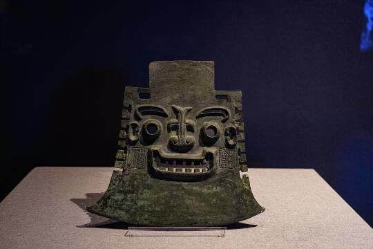 除了鹰顶金冠还有一些可爱的青铜器动物,比如羊、鸡、虎、豹、鹿、马、牛等等。大型青铜器也有很多,其中包括微笑斧头「亚醜钺」