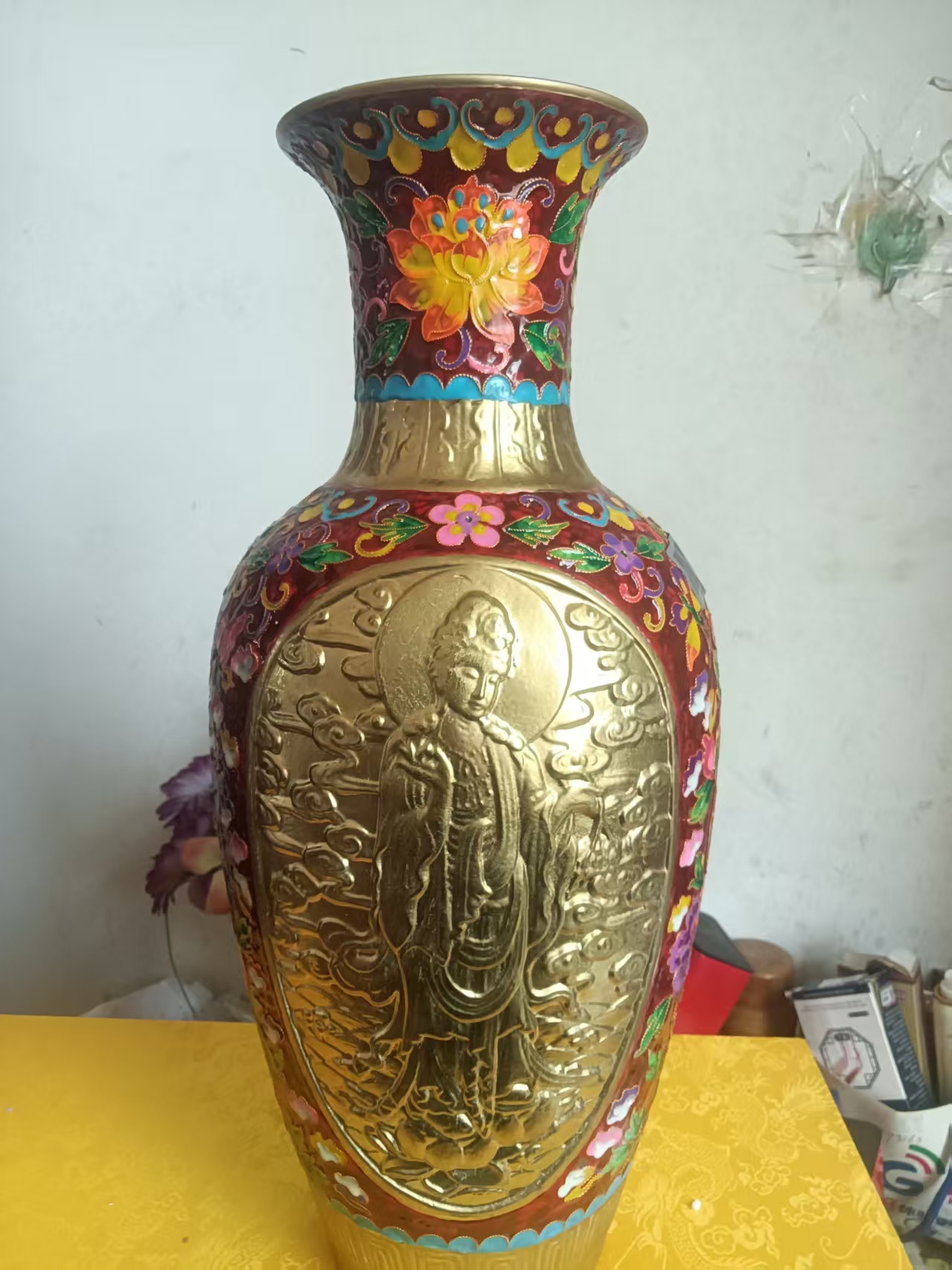 于收藏者而言,它是传统工艺的具象标本—— 珐琅彩的绚丽、浮雕的立体、金饰的华贵,尽显工艺师的匠心巧思;于家居陈设而言,它又是东方美学的点睛之笔—— 摆于书房,是 “禅意雅致” 的文化符号;置于客厅,那一抹金红珐琅的艳色,能瞬间提升空间的艺术格调,让传统信仰与现代生活在此间达成诗意共鸣。