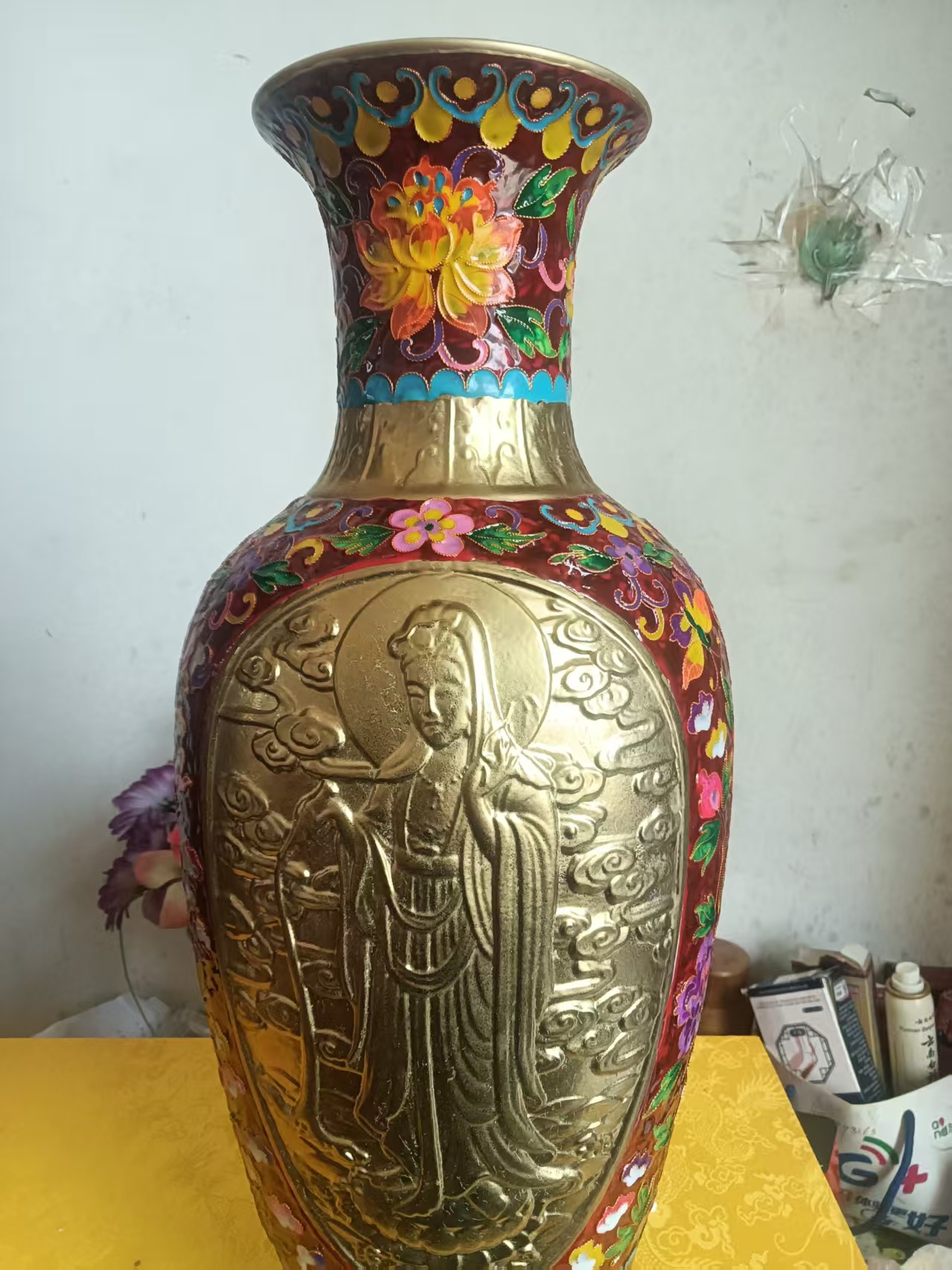 这只观音纹珐琅彩花瓶,不止是一件工艺瓷品,更是一段 “以瓷载道,以艺传情” 的文化叙事 —— 在金彩珐琅的璀璨里,藏着东方人对美、对善、对福的永恒追求。